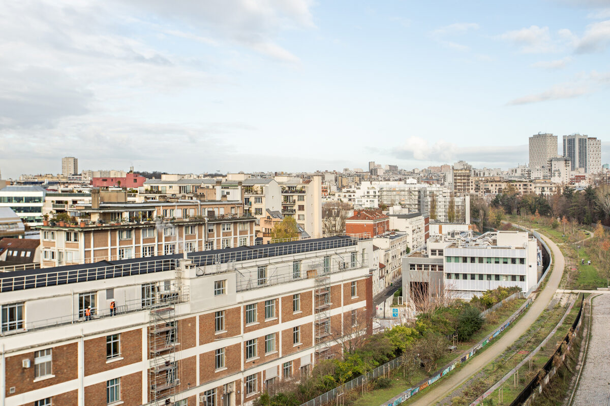 La partie nuit comprend deux chambres au calme offrant une belle vue sur la Petite Ceinture, une salle de bains avec baignoire et fenêtre, une salle de douche et des toilettes séparées.