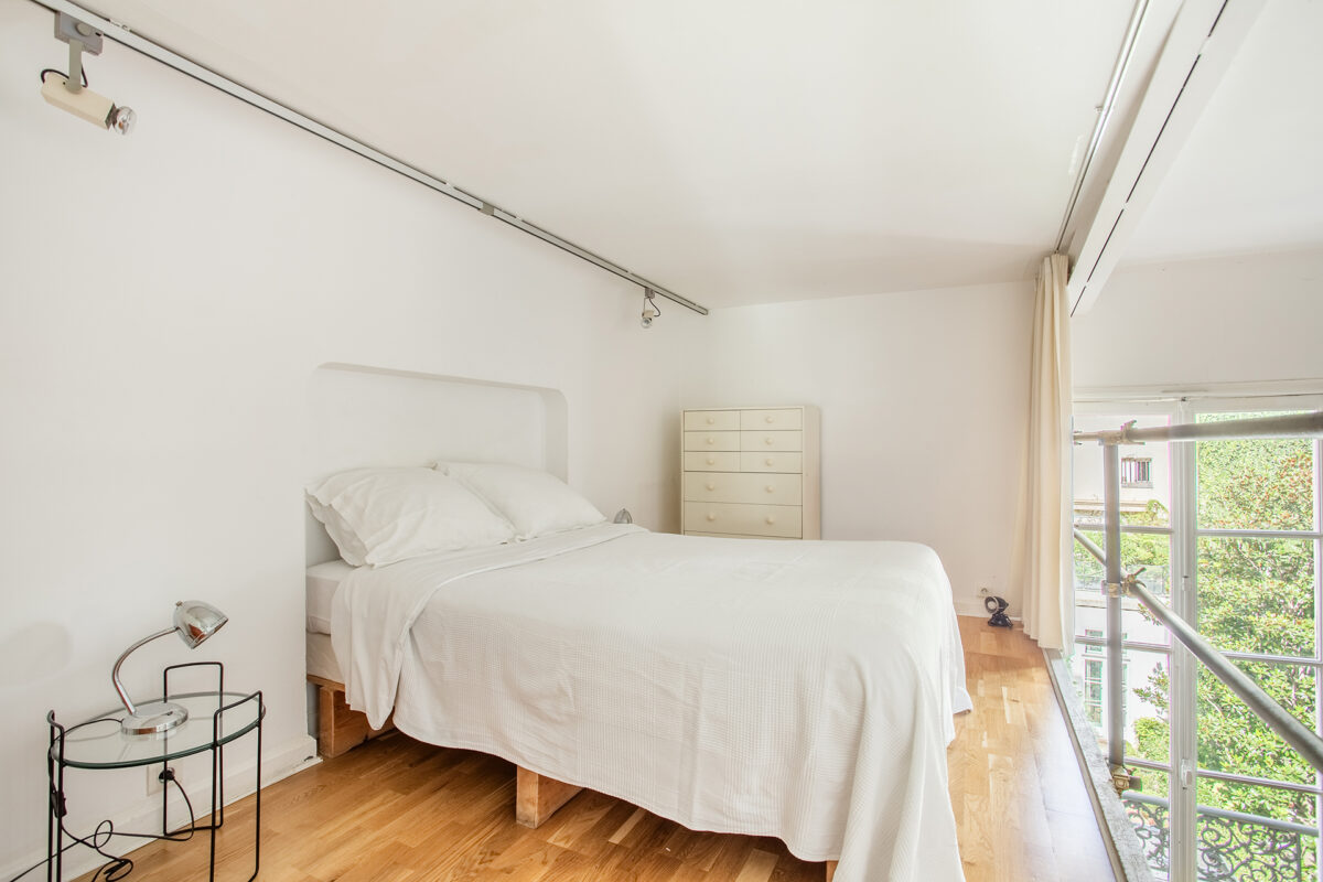 Loft design de 71 m2 au dernier étage avec vue sur jardin arboré.
